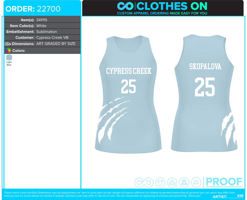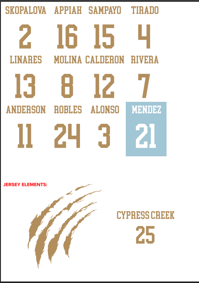 Cypress Creek Indoor Volleyball Jerseys Fall 2025